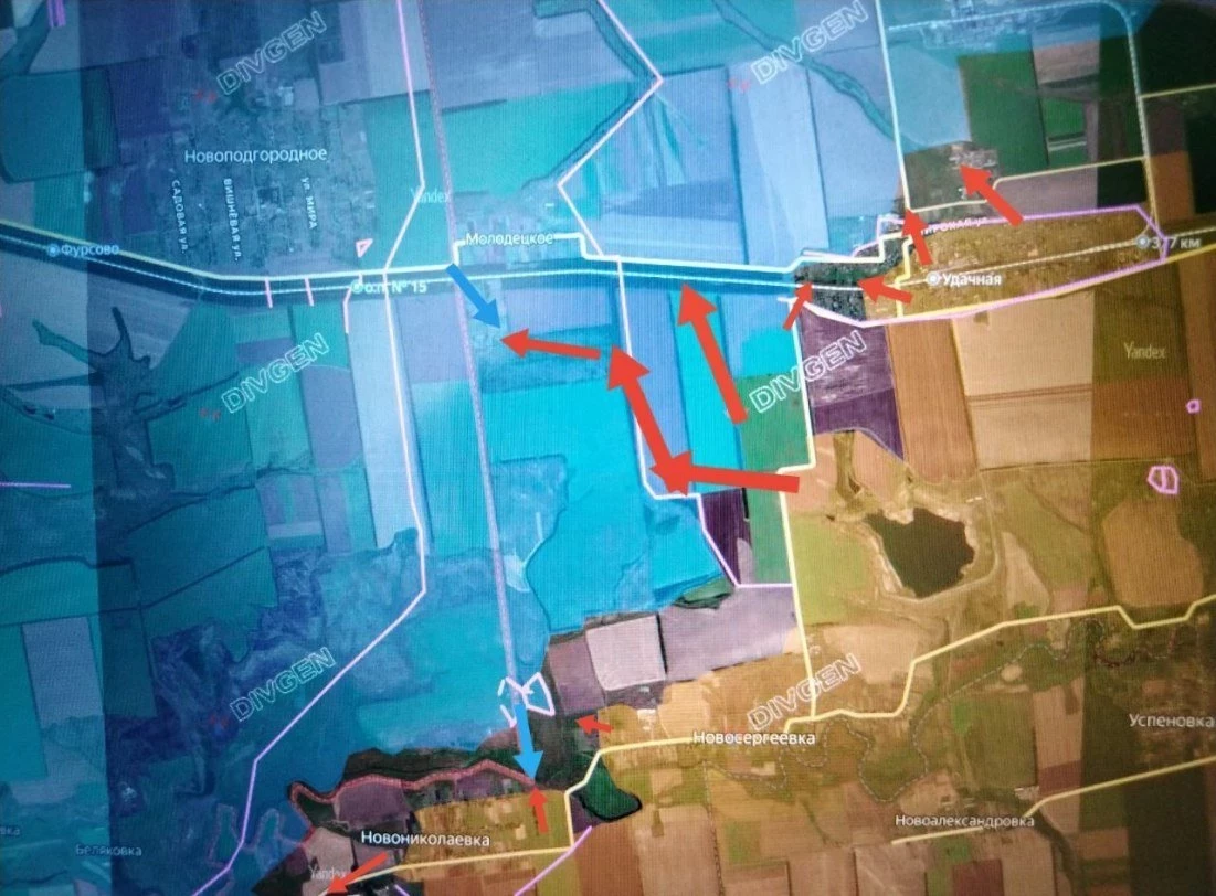 На Покровском (Красноармейском) направлении идут бои в Удачном, у Леонтовичей и между Трояндой и Шевченко. Из-за «красивых докладов» о взятом Новоэкономическом, достаточности личного состава и средств борьбы с дронами, диверсантами враг на днях протопал «взятое» Новоэкономическое к Малиновке, захватил пленных.