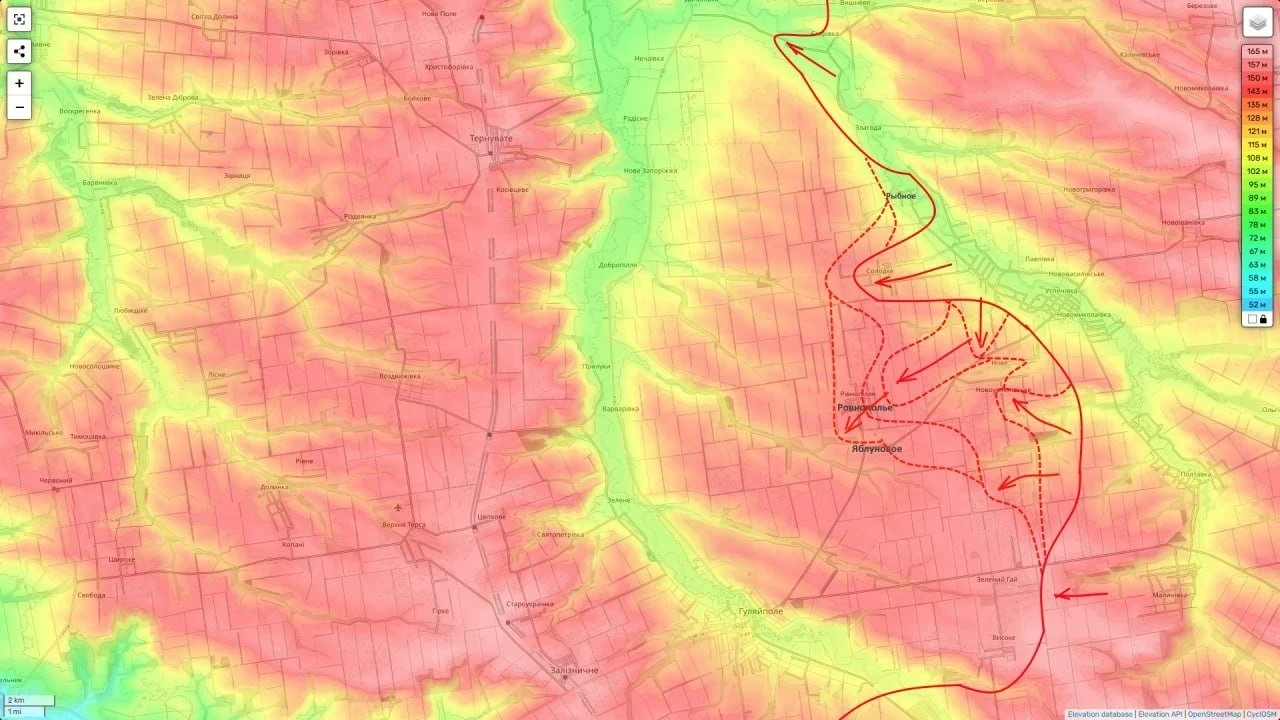 С юга российские силы развивают наступление на Гришино, продвигаясь по лесопосадкам. Этот населённый пункт имеет стратегическое значение - его потеря для ВСУ станет фатальной, поскольку лишит противника возможности контратаковать и вынудит перейти к обороне Белицкого и Доброполья.