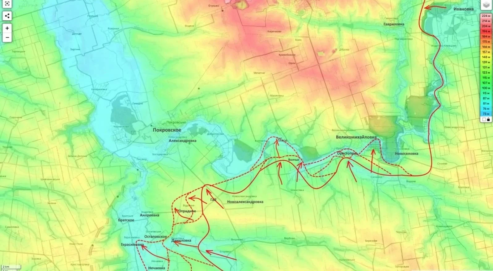 Блогер сообщил о продвижении российских бойцов в направлении поселка Покровское и села Братское. Подоляка отметил принципиальную важность этих населенных пунктов для противника.
