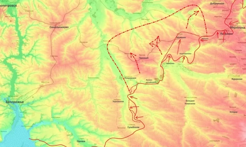 По данным военных Telegram-каналов, интенсивные бои наблюдаются в районе Новоданиловки и Новоандреевки на запорожском фронте. Российская армия ведет наступательные действия с целью выхода к Орехову.