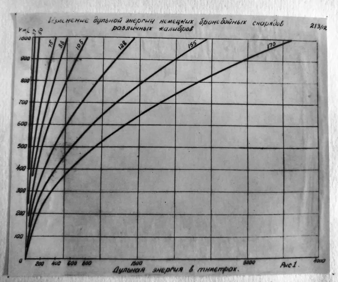 Однако, используя трофейные материалы Хиллерслебенского полигона, подробно о которых будет сказано ниже, данные Кубинского полигона по испытанию опытного объекта «260» немецкими 128-мм снарядами и имеющиеся данные по обстрелу отечественной брони немецкими снарядами меньших калибров, расчетным путем были получены тактические диаграммы противоснарядной стойкости отечественной гомогенной брони также против снарядов и этого калибра.