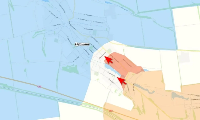 Штурмовые подразделения группировки войск «Центр» продвигаются в Гришино, наступление идет по улицам Центральной и Виноградной с северной стороны Центрального пруда. По южной тоже начато движение, но оно не такое быстрое, хотя часть территории и домов по улицам Азовская и Степная перешла в серую зону. На данный момент наши штурмовики практически вышли к центру села, до которого осталось чуть больше 500 метров.