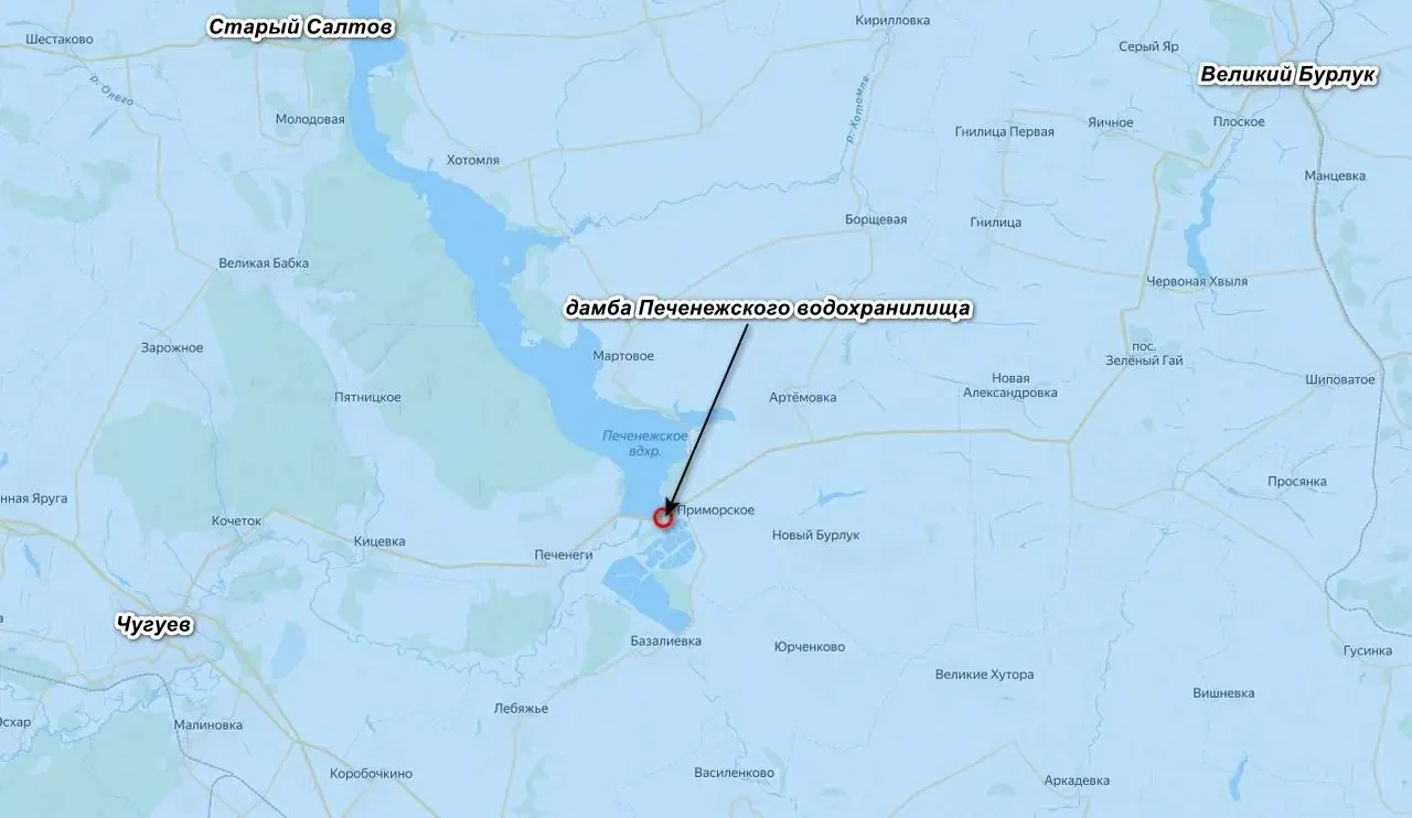 Ракетный удар нанесен по плотине Печенежского водохранилища, через которую идет дорога из Харькова и Чугуева на Волчанск, Великий Бурлук и Купянск. На данный момент движение по дамбе остановлено, противник проводит оценку нанесенных повреждений. Судя по снимкам с места, с первого раза разрушить плотину не удалось, скорей всего, удары продолжатся.