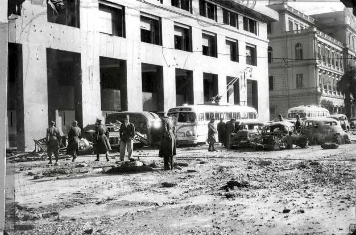 В общем, к 16 июня 1955 года желающих свалить Перона хватало. Была предпринята попытка государственного переворота, после неудачи которой толпа сторонников «эль Президенте» вышла на площадь Мая и начала перед президентским дворцом Каса-Росада демонстрацию в поддержку сеньора Хуана. В 12:40 по местному времени над площадью появились 30 самолётов: 22 North American AT-6, 5 — Beechcraft AT-11 и 3 — Consolidated PBY Catalina. В результате бомбардировки погибло 364 (есть другие цифры, но эта наиболее достоверна) мирных жителей, а авиация Аргентины получила свой первый боевой опыт (если такое, конечно, можно назвать боем). Тогда переворот удалось предотвратить, оставшийся верным Перону истребитель даже сбил один из самолётов мятежников, но... Было ясно, что за «эль Президенте» взялись всерьёз.