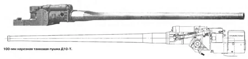 При установке пушки Д10-Т с уменьшенной силой сопротивления откату при положении башни пушкой вперед обзорность неудовлетворительная, т. к. не видно левое крыло машины, хотя непросматриваемое пространство не выходит за пределы тактико-технических требований.