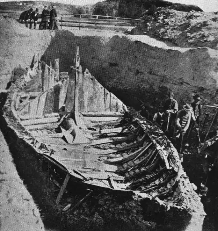 Человеку, которого похоронили на борту корабля, было по крайней мере за 50, причем рост его был около 185 см. А еще он страдал артритом и, скорее всего, просто не мог ходить. Кем он был? Скорее всего, вождем или местным королем в Вестфолде, который пользовался поддержкой других местных вождей. Драгоценностей в погребении археологи не нашли, их, видимо, давно унесли грабители могил, но все равно там нашлось немало интересного, включая игровые доски, посуду, палатки, три лодки поменьше, двенадцать лошадей, восемь собак и двух павлинов. Оружие и драгоценности были унесены еще в конце 900-х годов.