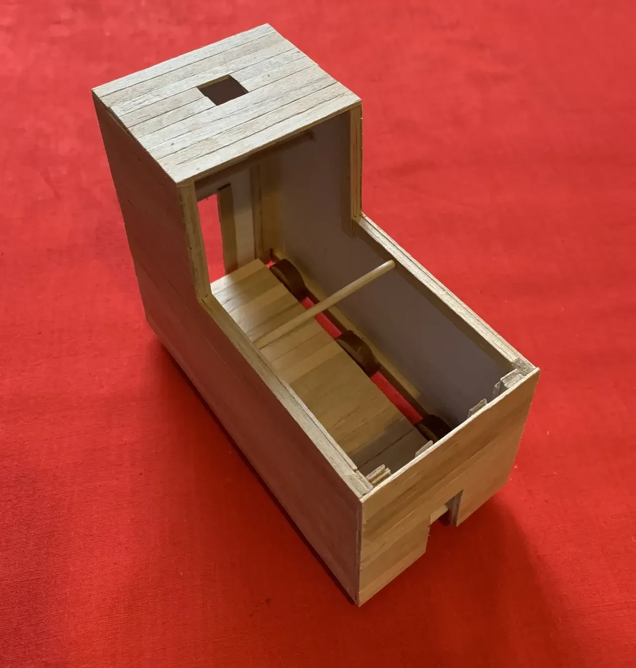 Детали модели ассирийского тарана. Вид с внутренней стороны. Задняя стенка башни и крыша отсутствуют. Их нужно настилать в последнюю очередь. Фотография автора