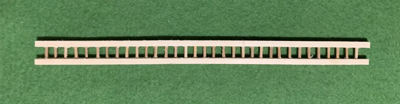 Наиболее трудоемкая деталь башни – лестница, что ведет на ее верхнюю площадку. Для ее изготовления потребуются две рейки квадратного сечения от компании «АВ-модель», в которых с шагом 5 мм просверливаются отверстия диаметром 1 мм. В масштабе 1:72, в котором как раз и делается наша модель башни, высота лестницы составит 170 мм. В отверстия вставляются зубочистки, смазанные клеем.