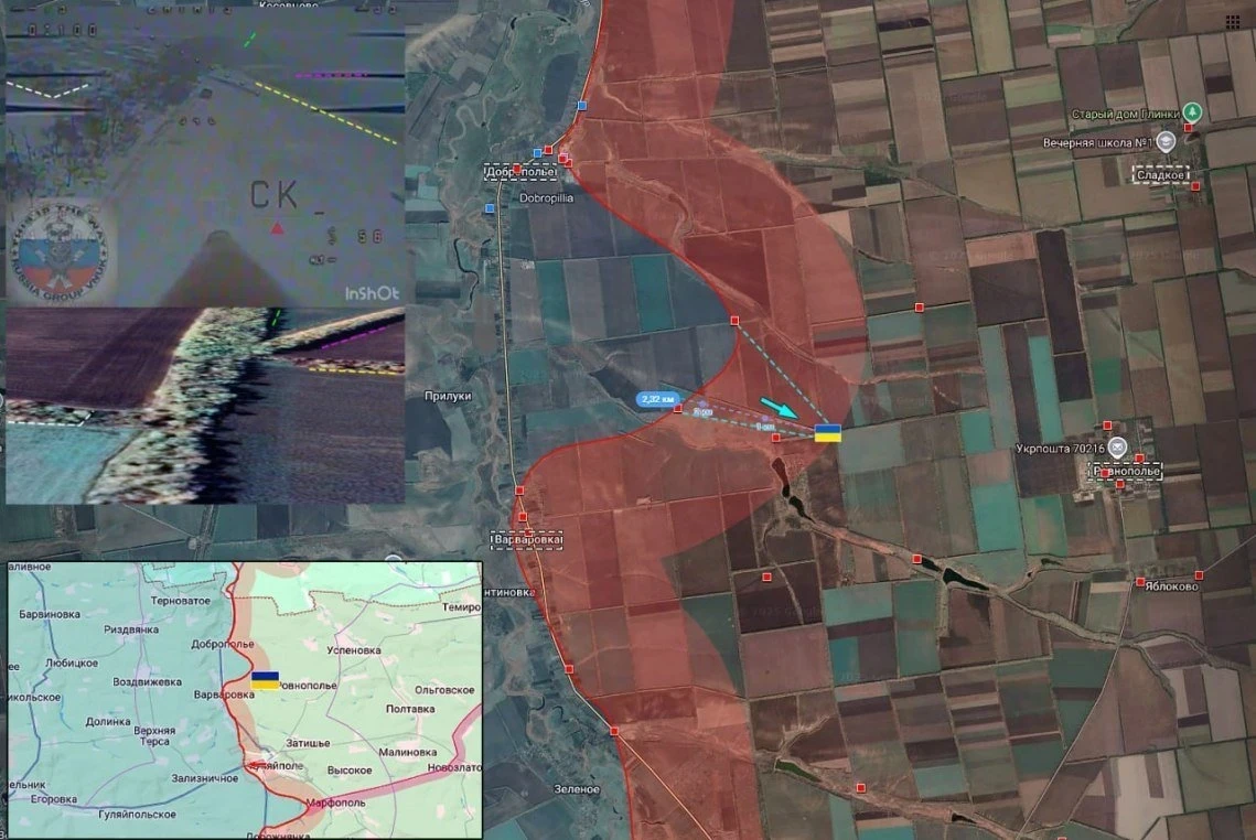 Подтверждается информация о том, что российские войска сводят к нулю щедро растиражированное украинскими медиа достижение ГУР, НГУ и ВСУ к востоку от города Доброполье. Речь идёт о выступе в районе Вольного и Кучерова Яра.