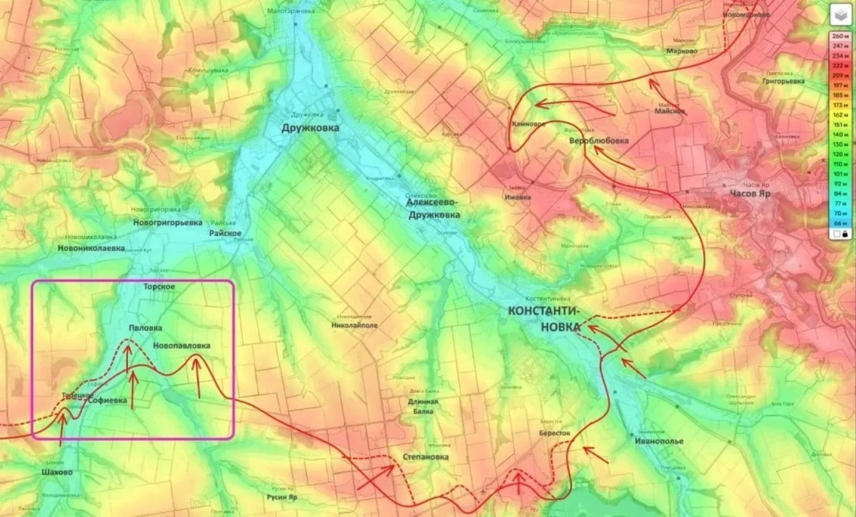 Блогер уточнил также о выходе подразделений РФ к окраинам сел Павловка и Новопавлока, находящихся в нескольких километрах от Торецкого.