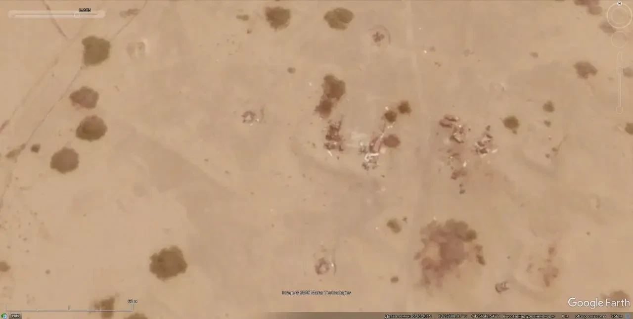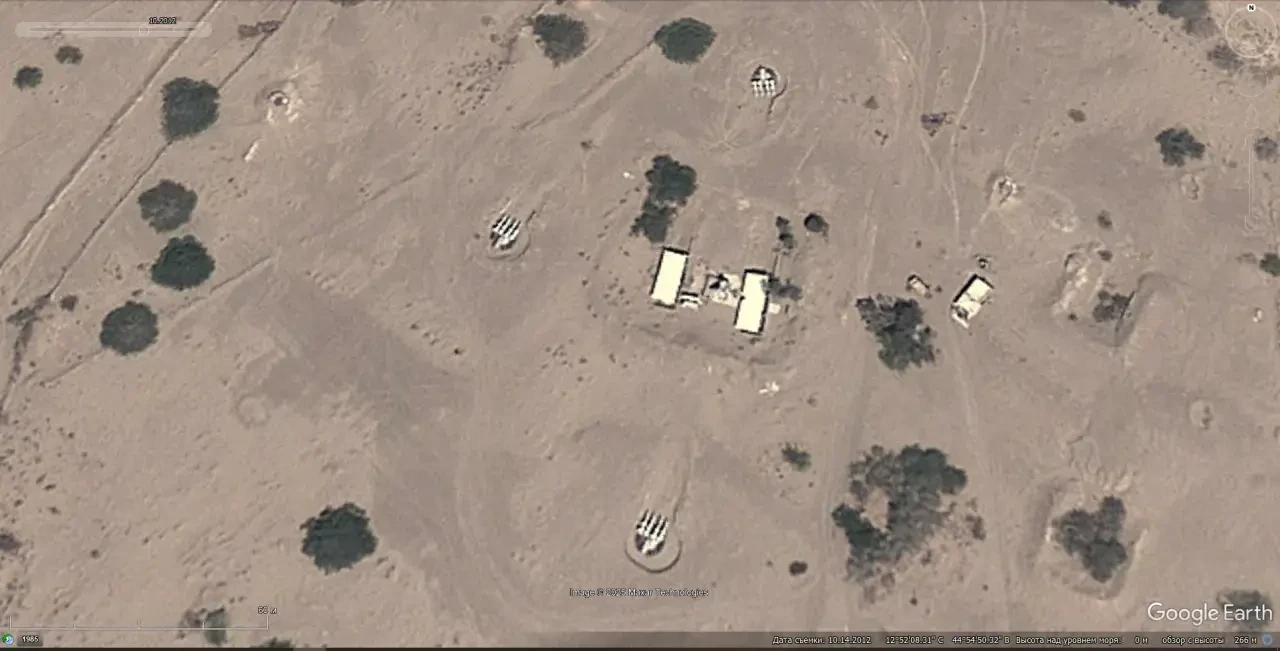 Спутниковый снимок Googlе Eаrth: макеты пусковых установок ЗРК С-125 на полигоне Спейдадам
