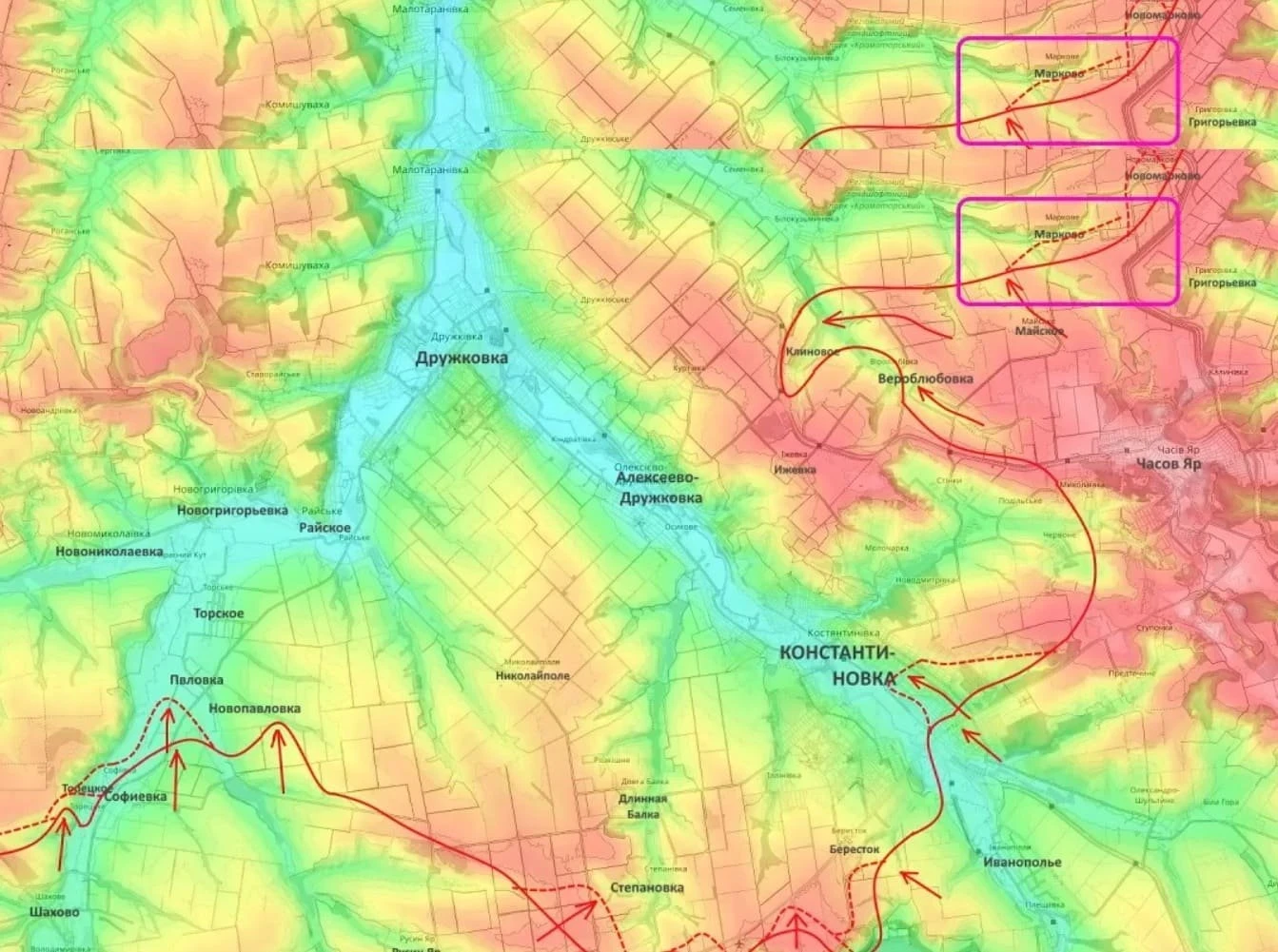 На Константиновском направлении ВС РФ расширяют плацдарм севернее Константиновки (район Веролюбовки и Майского), занята южная часть Марково.
