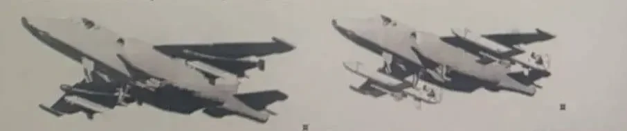 Предполагаемое размещение «Гераней-4» (слева) и «Гераней-5» (справа) на самолёте-носителе