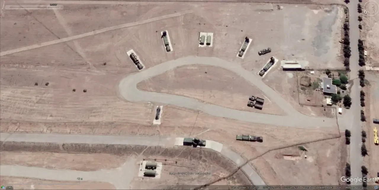 Спутниковый снимок Googlе Еarth: позиция ЗРС С-300ПМУ-2 в районе Khavar Shahr. Снимок сделан в мае 2017 года