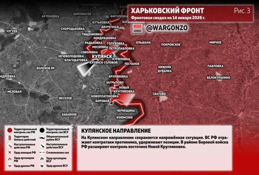 Обстановка на Купянском направлении: карта боевых действий на сегодня, 14.01.2026