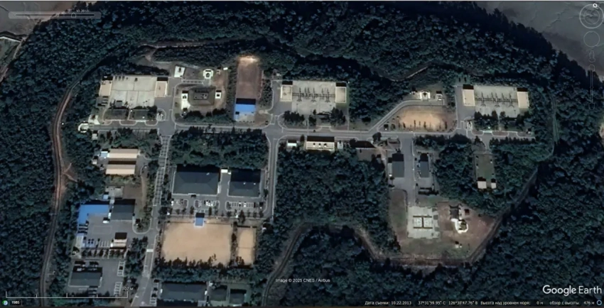 Спутниковый снимок Google Earth: позиция ЗРК MIM-23В I-Hawk восточней Пусана. Снимок сделан в октябре 2022 года