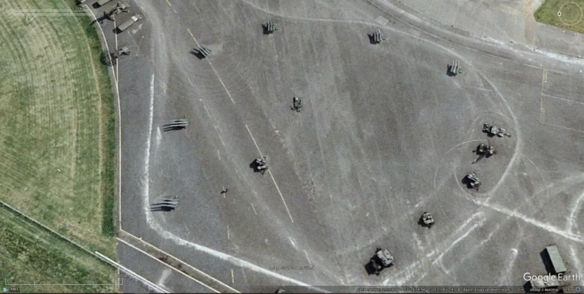 Спутниковый снимок Google Earth: позиция ЗРК MIM-104 Patriot PAC-2 в 6 км южней города Каратея. Снимок сделан в августе 2025 года