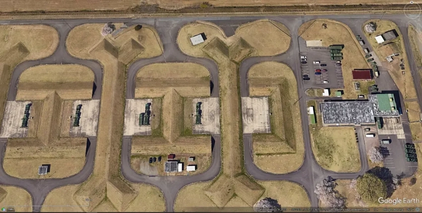 Спутниковый снимок Google Earth: элементы ЗРК MIM-14 Nike Hercules на базе хранения в западном пригороде города Падуя. Снимок сделан в мае 2009 года