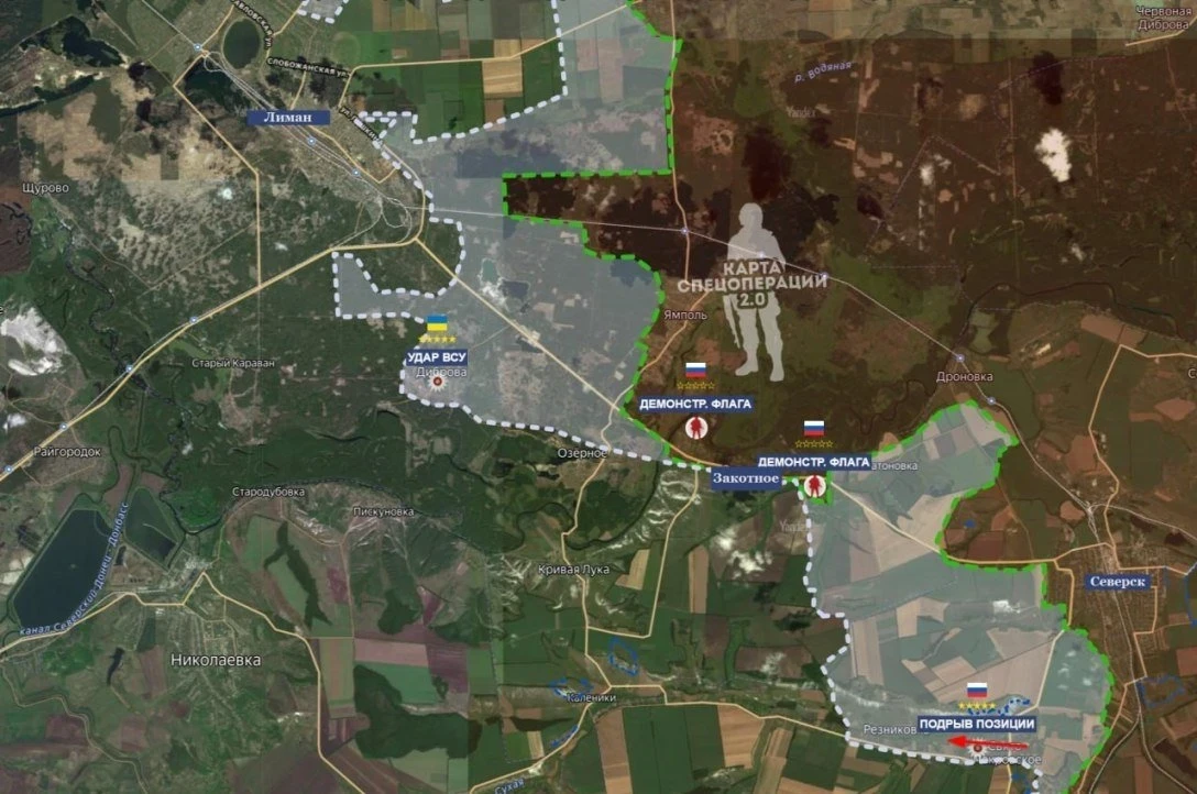 На Краснолиманском направлении борьба с нацизмом набирает обороты. ВС РФ наступают в сторону северной окраины Красного Лимана, продвигаются в юго-западной части Диброва.