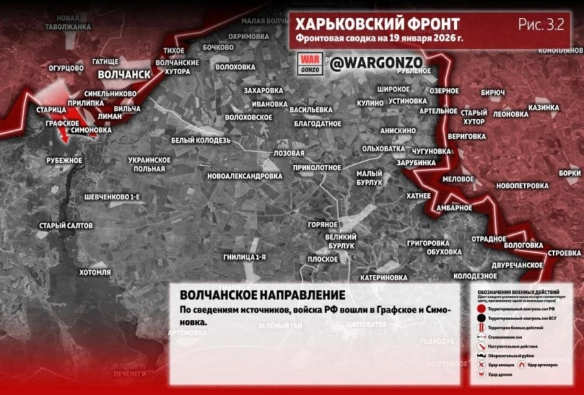 На Волчанском направлении, по сведениям источников, войска РФ вошли в Графское и Симоновку.