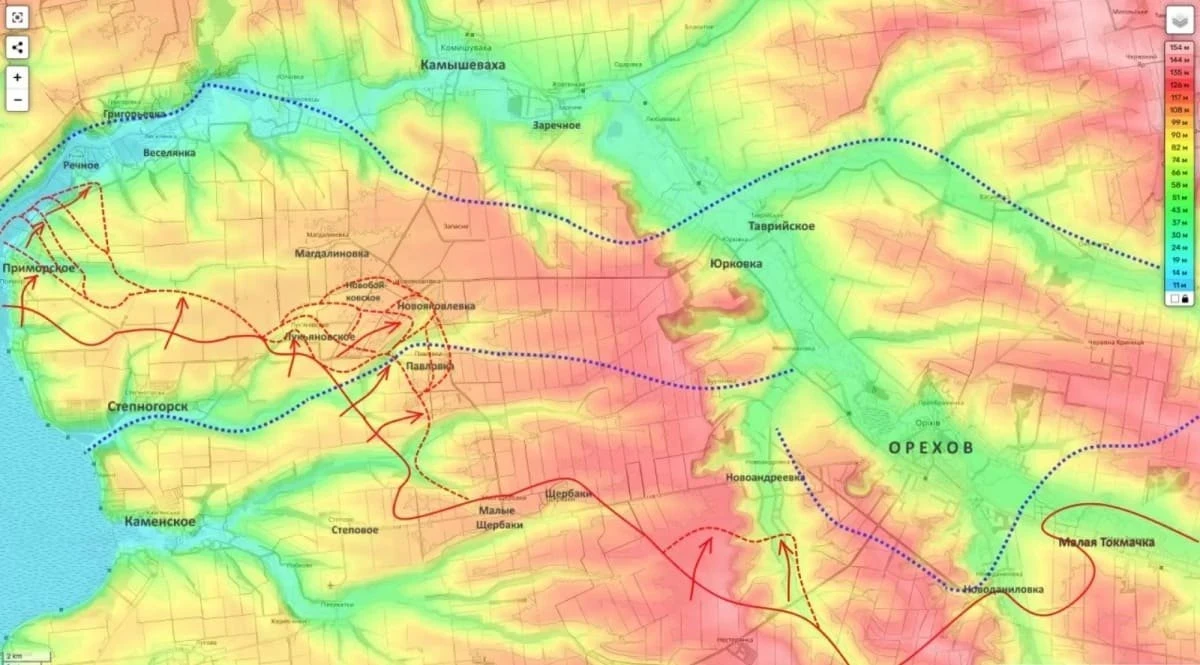 Это продвижение подтачивает оборонительные рубежи противника на восточном фланге Орехова, а также не позволяет сформировать ударный кулак для попытки контратаковать в направлении Гуляйполя.