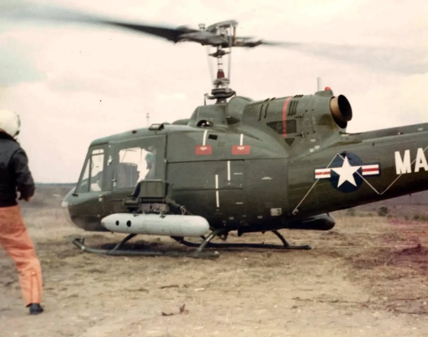Вертолёт UH-1 армейской авиации с подвесным контейнером М18