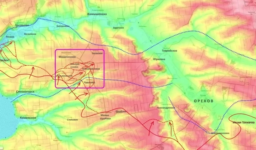 Важным тактическим результатом стало взятие под контроль железнодорожной станции Элеватор в Терноватом - одного из ключевых логистических узлов ВСУ. Сейчас идёт зачистка западных окраин посёлка. После завершения этой фазы, по оценке эксперта, откроется путь на Рождественское, что усиливает угрозу окружения Ореховской группировки сразу с нескольких направлений.