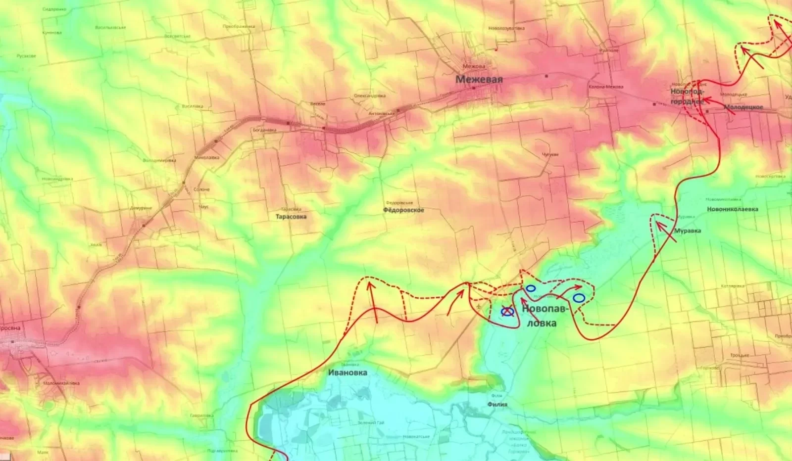 Севернее Торецка российские штурмовые группы продвигаются от района Шахово по балкам на север. Выход на рубеж Новониколаевка - Григорьевка - Райское - вопрос ближайшего времени. Это создаст критическую угрозу для Константиновки, охват которой ведется как с юга, так и с востока (через район Новодмитровки). Официально подтверждено освобождение Берестка (район Ильиновки).