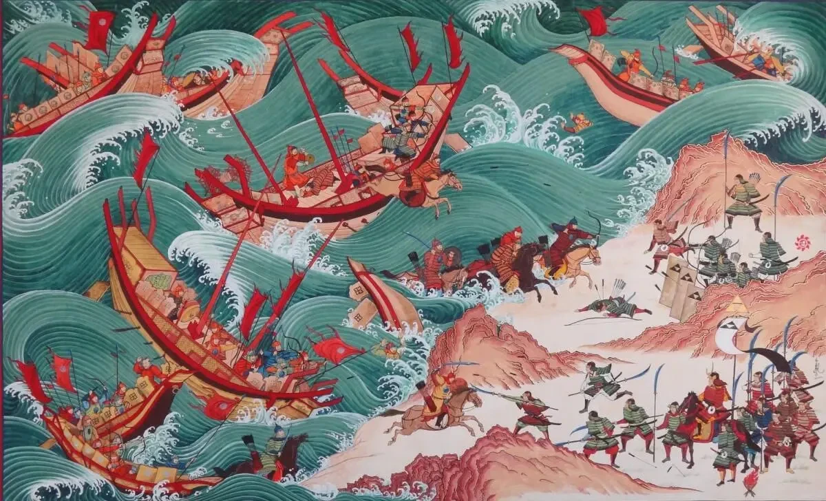Отношение Кореи с Японией испокон веку были... сложные. У нас часто вспоминают об Имиджинской войне и прочих агрессиях самураев на полуостров. Но как-то забывается, что флот хана Хубилая, дважды попытавшегося завоевать Японию, был корейским. Корейцы — хорошие моряки, одни из лучших в этих краях. А на фоне китайцев, которые в военно-морских вопросах никогда звёзд с неба не хватали, так и просто терминаторы!