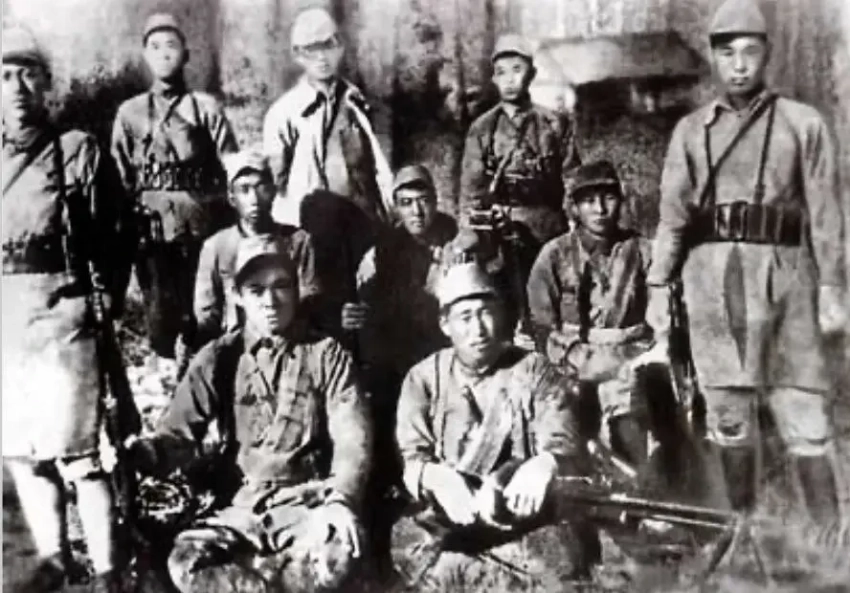 Ким Ир Сен (в заднем ряду в центре) со своими партизанами