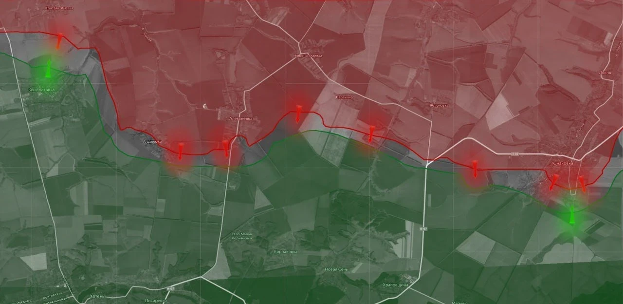 В Сумском приграничье ВС РФ активны на плацдарме в районе Краснополья, где ведут бои за Покровку. Также сообщают об активных боях в районе Мирополья, где наши бойцы заняли выгодные позиции на высотах. Не прекращаются и бои в районе Юнаковки и на Глушковском участке, заставляя ВСУ растягивать свои резервы.