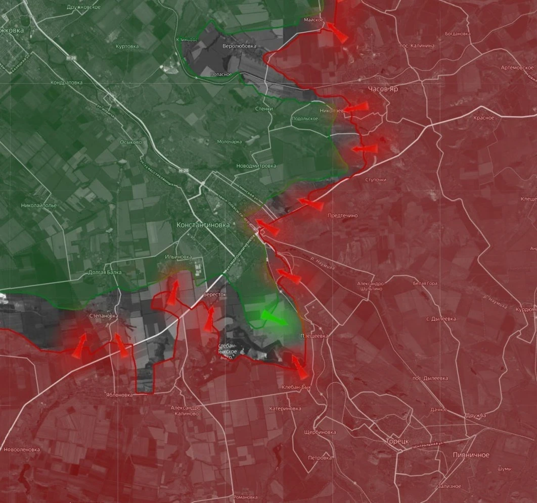 В самой Константиновке бои идут уже в районе железнодорожного вокзала. Наши штурмовики пробиваются к территории металлургического завода - ключевого узла обороны противника в промзоне.