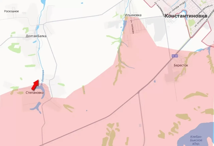 На Константиновском направлении бойцы армии России взяли под контроль водохранилище на реке Лозовая. Этот небольшой водоём расположен в селе Степановка, что в 3,5 км к юго-западу от Константиновки.