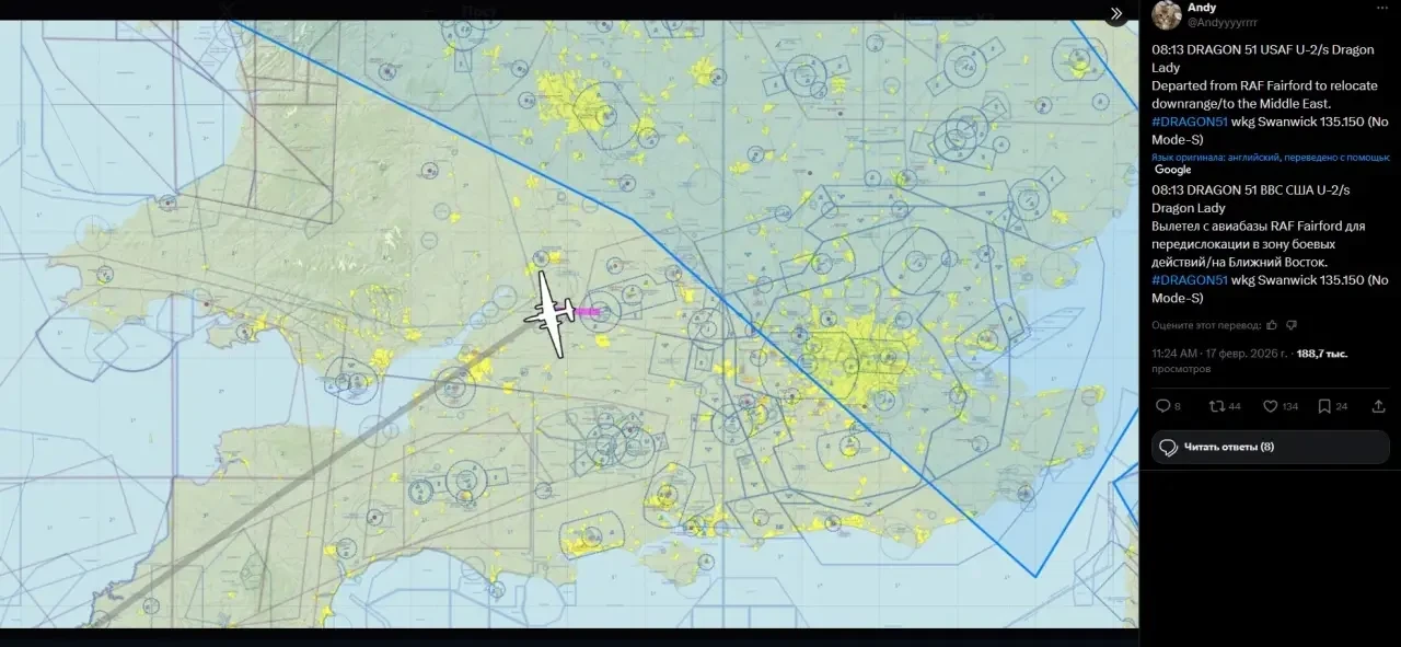 Большая группа самолетов американских ВВС направляется на Ближний Восток, чтобы усилить уже находящиеся там силы, пока президент США Дональд Трамп рассматривает возможность нападения на Иран. Онлайн-трекеры показывают, что истребители F-22 «Раптор», истребители F-16 «Файтинг Фалкон», радиолокационные самолёты E-3 «Сентри» и самолёт-разведчик U-2 «Дракон Леди» (господи, даже этого ветерана припахали!) либо пересекают Атлантику, либо только что прибыли в Европу. Кроме того, седьмой эскадренный миноносец с управляемым ракетным оружием типа «Арли Бёрк», «Пинкни», недавно был направлен в зону ответственности Центрального командования США.
