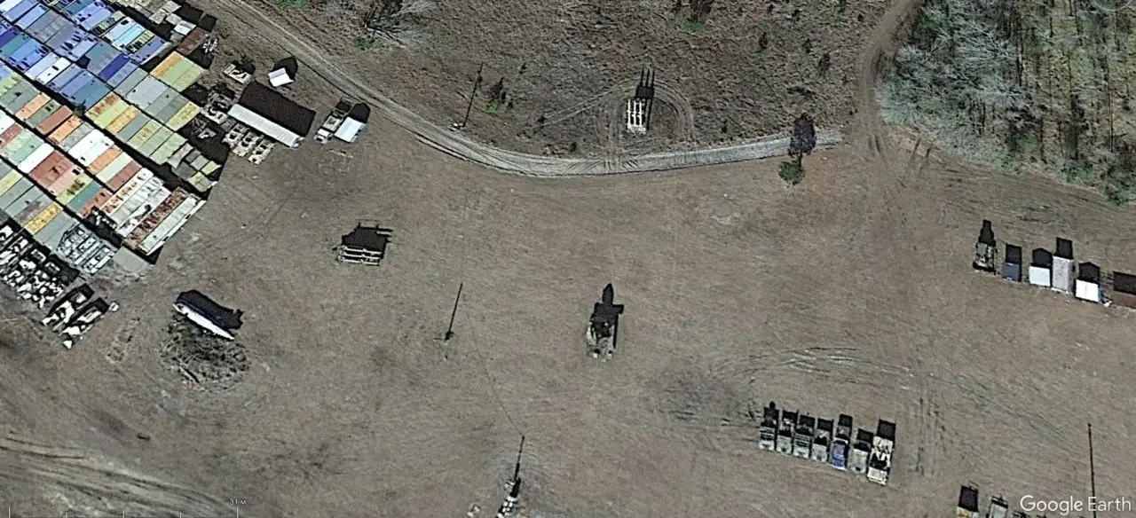 Спутниковый снимок Google Earth: база хранения ЗРК «Круг», расположенная на окраине села Карашен. Снимок сделан в феврале 2021 года