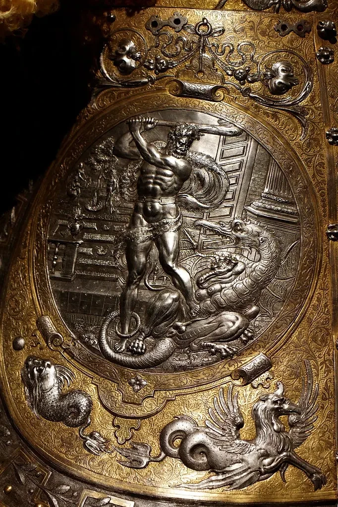 Медальон возле хвоста справа: Геракл и дракон Ладон