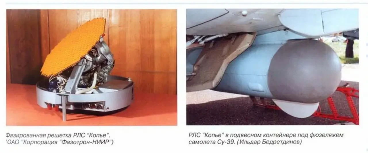 Также существует подвесной контейнер «Сыч» «УКР-РЛ», предназначенный для ведения активной радиолокационной разведки, проблема только в том, что, как и в случае с контейнером «УКР-ОЭ», его РЛС ориентирована перпендикулярно направлению полёта носителя, что нам не подходит, тем не менее, потенциально подвесной контейнер с РЛС может быть создан на базе наработок по контейнеру «Сыч» «УКР-РЛ» или по теме «Копьё», или каких-либо новых решений.