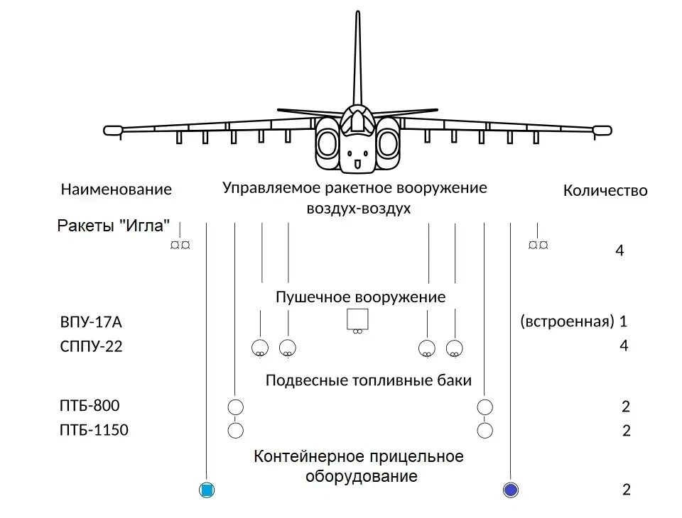 Предполагаемый состав вооружения и оборудования Су-25П