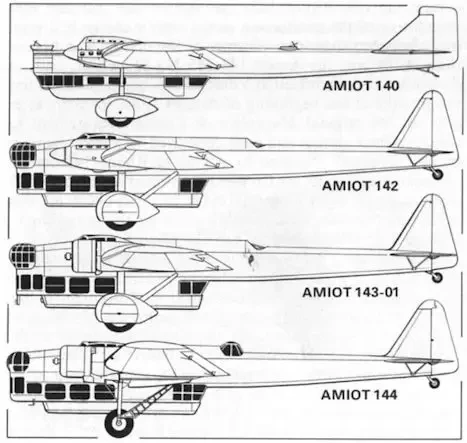 Как бы то ни было, Министерство авиации заказало 2 прототипа с двигателями Lorraine-Dietrich 18Ga Orion (цифра 18 означает число цилиндров). Это были W-образные, т. е. трехрядные двигатели водяного охлаждения мощностью 700 л. с. при 2100 об/мин и 870 л. с. при 2500. Предполагалось, что 18G с нагнетателем будет иметь мощность 1050 л. с. при 2150 об/мин. Но эти двигатели так и не удалось довести, поэтому первый прототип, т. е. Amiot 140-01, получил моторы Hispano-Suiza 12Nbr с редуктором Farman мощностью всего 650 л. с.