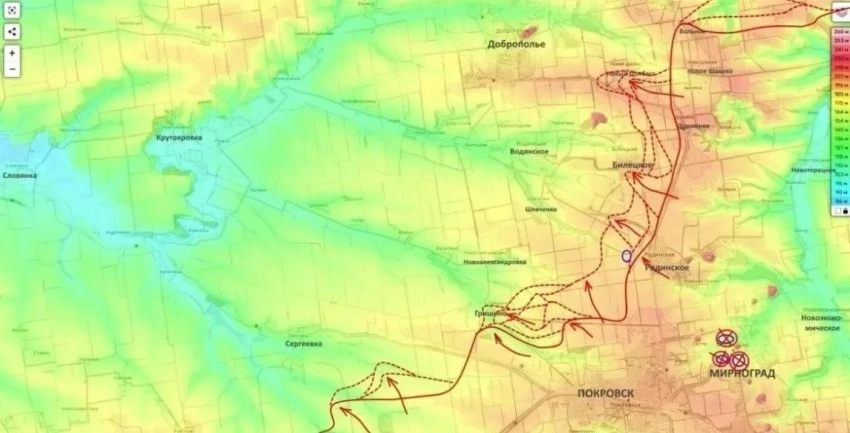 Тяжёлые встречные бои также фиксируются в районе Белицкого. Несмотря на то, что изменения линии фронта на карте могут выглядеть незначительными, плотность огня и интенсивность столкновений здесь остаются крайне высокими.