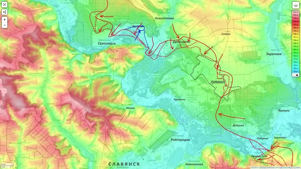 Давление на северные подступы к Лиману усиливается. При этом Подоляка отмечает важнейший фактор - весеннюю распутицу и разлив рек. Погода критически осложняет логистику украинской группировки, хотя и несколько замедляет темпы наступления ВС РФ.