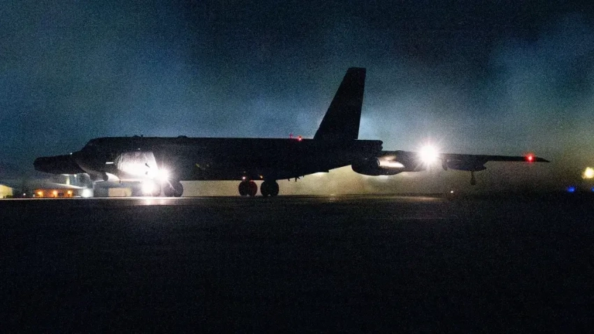 Бомбардировщик B-52H Stratofortress ВВС США готовится к взлету в рамках операции «Ярость», 2 марта 2026 года