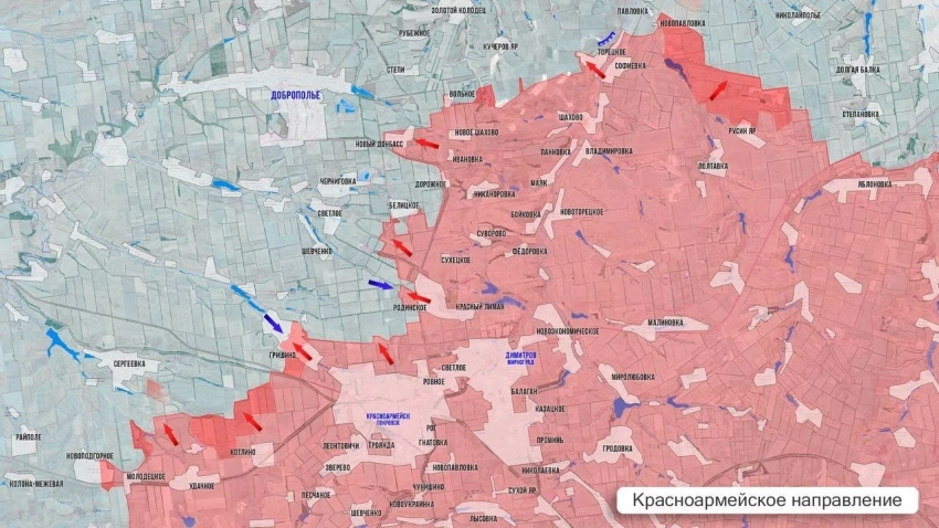 По его словам, на этом участке украинские силы постепенно отходят под давлением российских подразделений. Особое значение, по мнению эксперта, имеют бои за населённый пункт Гришино.