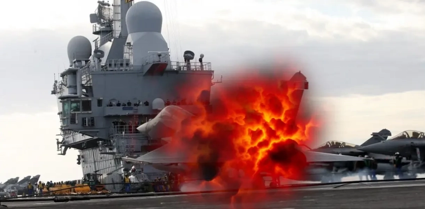 Пока экипажи кораблей французской АУГ были заняты борьбой с последствиями атаки FPV-дронов, несущиеся на максимальной скорости БЭК-камикадзе приблизились к авианосцу на расстоянии менее одного километра.