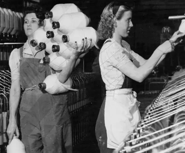 Работницы текстильной промышленности. Текстильная промышленность Аргентины в 1920-1930-х годах пережила значительный рост, особенно в производстве хлопка и шерсти. В этот период наблюдалось увеличение объемов внутреннего производства для удовлетворения местного спроса и снижения зависимости от импорта. Хлопок и шерсть были основным используемым сырьем, поскольку Аргентина имела мощную сельскохозяйственную базу для производства шерсти и хлопка, что приводило к созданию новых фабрик...