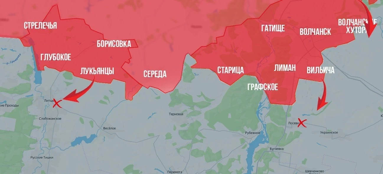 На Харьковском фронте ВС РФ зачищают Волчанские Хутора, выбивая противника из капитальных строений. Фиксируется продвижение к югу от города - к Избицкому и Верхней Писаревке.