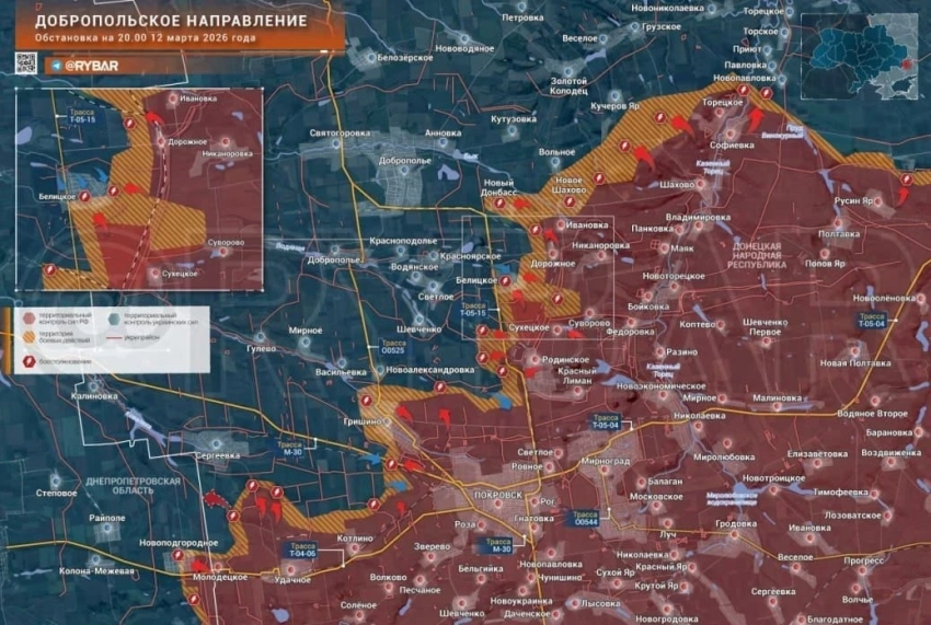 ВС РФ продвинулись за сутки на ключевых направлениях в зоне СВО: свежие карты боевых действий на 13.03.2026