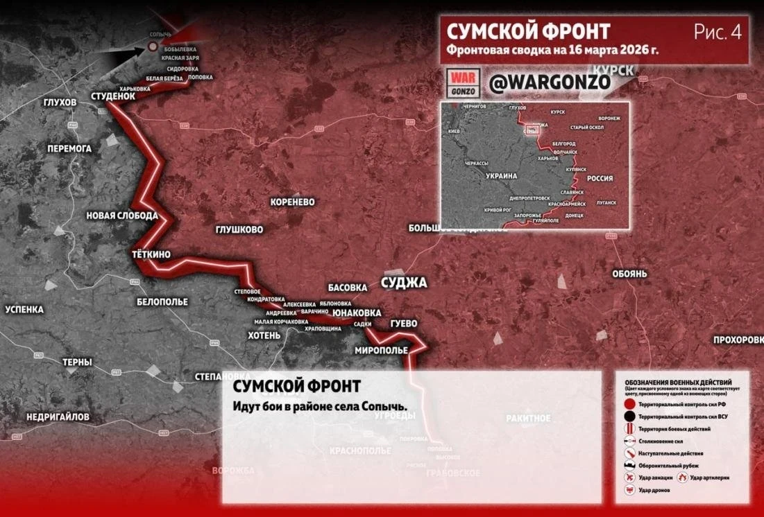 В Сумском приграничье штурмовые группы группировки «Север» ведут тяжелейшие бои, продвигаясь вглубь территории. Зафиксировано продвижение до 400 метров на девяти различных участках (в том числе на семи в Сумском районе и на двух - в Глуховском).