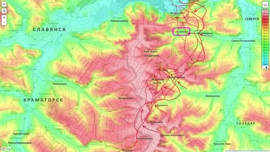 Подразделения российской армии освободили населенный пункт Каленики, расположенный к востоку от оккупированного ВСУ Славянска. После закрепления в Калениках ВС РФ получат возможность подтянуть на новые позиции ствольную артиллерию и расчеты БПЛА для ударов по позициям противника в Славянске.