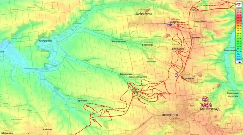 Однако важные события, по данным Юрия Подоляки, всё равно происходят. В частности, они имеют место на Покровско-Добропольском направлении. Здесь российские подразделения ведут мощное наступление в общем направлении на Доброполье.